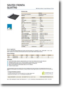 UV resistant breather membrane permanently protects the insulation from wind and rain. Solitex Fronta Quattro is compatible with open jointed cladding with gaps of up to 35mm. Each piece of the cladding must also be at least three times wider than the gap. The ventilation space between the membrane and the cladding must be at least 20mm.