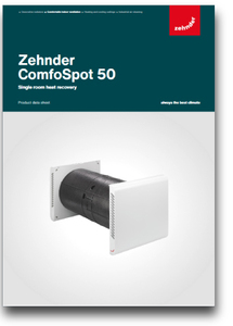 The Zehnder ComfoSpot 50 is a de-centralised ventilation unit with heat and humidity recovery using synchronous supply and extract air operation. It is often used in apartment renovations as well as in new PassivHaus residential builds. The ComfoSpot 50 de-centralised ventilation unit is suitable for venting individual rooms. An enthalpy exchanger, which ensures a high degree of heat and humidity recovery, is standard in the unit, which has a positive effect on the room humidity and therefore provides a comfortable indoor climate.