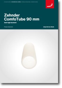 Zehnder ComfoTube 90mm is a high performance semi-rigid ductwork ideal for residential applications. The low profile manifolds and ductwork mean it’s perfect for use in small ceiling voids and is strong enough to even be set into the building concrete structure. The clinside smooth internal lining help to reduce build up of dust and enable the ductwork to be cleaned, this has helped the ductwork achieve a hygiene certificate from the Hygiene Institute. The ductworks quality has also earned it the highly acclaimed SKZ certification in addition to meeting the minimum standard for PCDB accreditation.